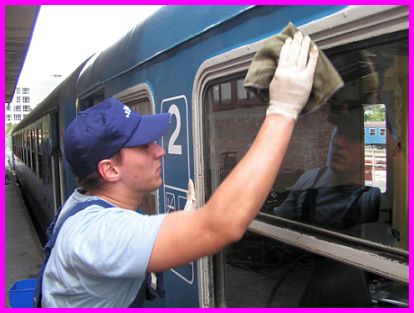 A külső vonattakarítás mára már ritkább a takarítőgépek miatt, és balesetveszélyes is.